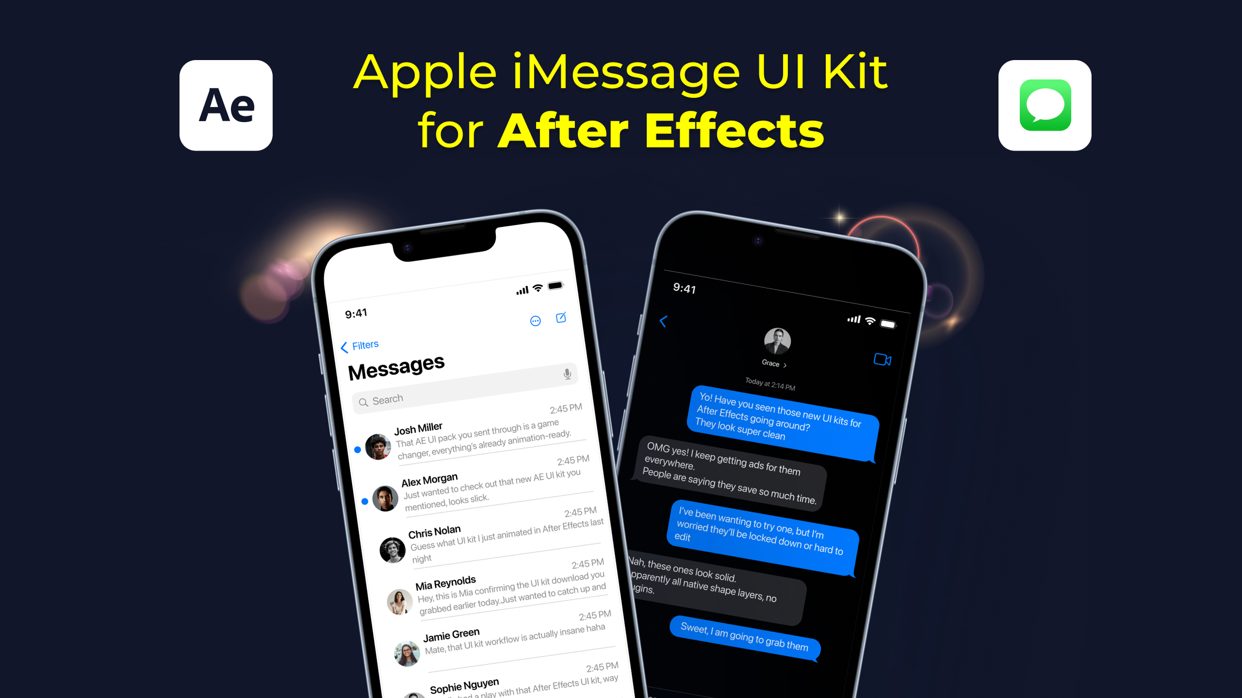 This kit is designed specifically for motion designers, video editors and product teams who need realistic Apple-style messaging visuals directly inside After Effects.