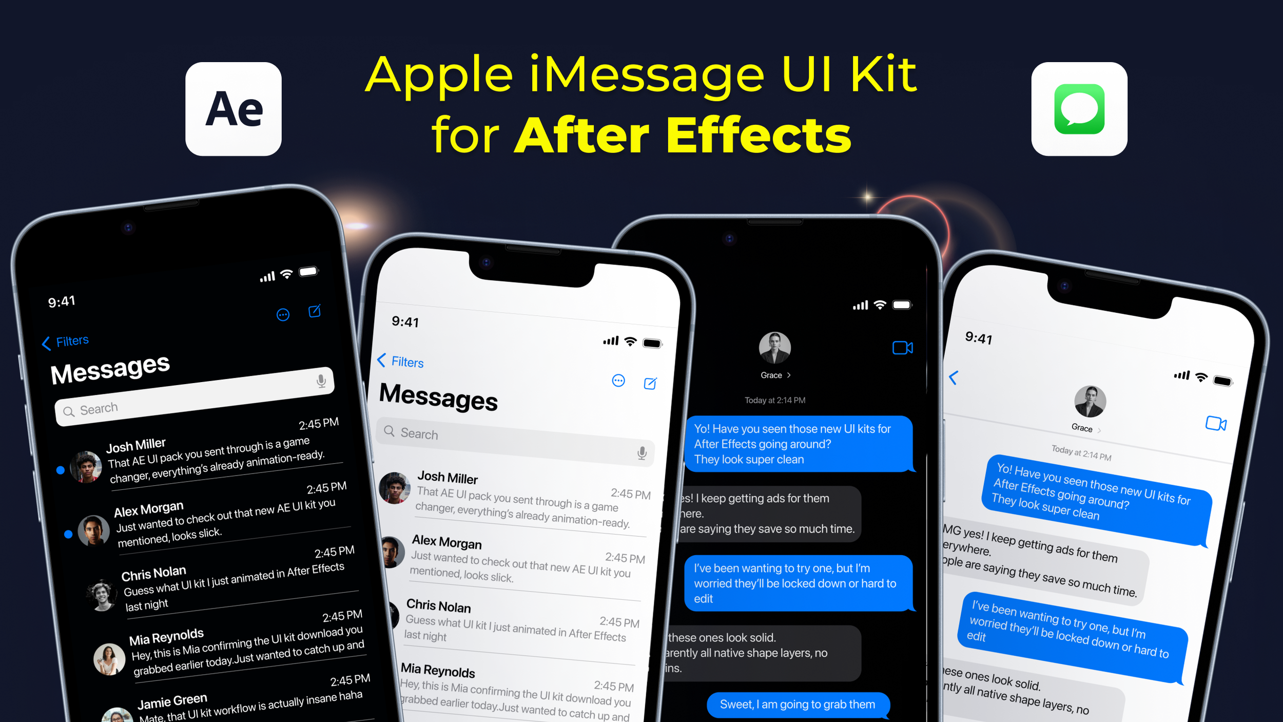 If you’re searching for Apple iMessage UI for After Effects, chat UI templates, or a fast way to animate realistic iMessage conversations without rebuilding everything from scratch, this kit is designed for you.