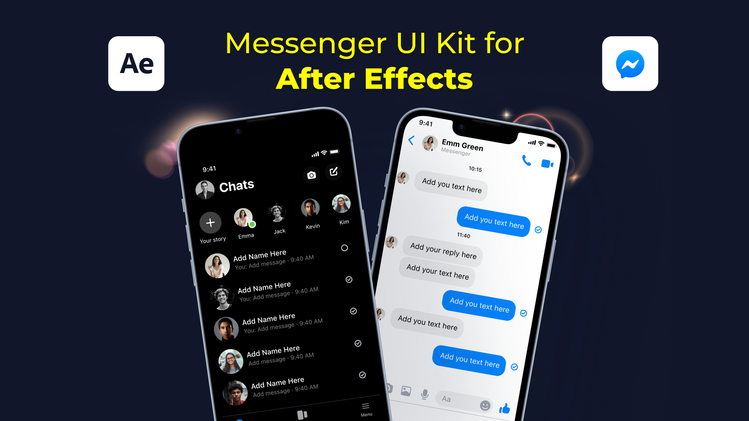 This kit is designed specifically for motion designers, video editors and product teams who need realistic Messenger-style visuals directly inside After Effects.