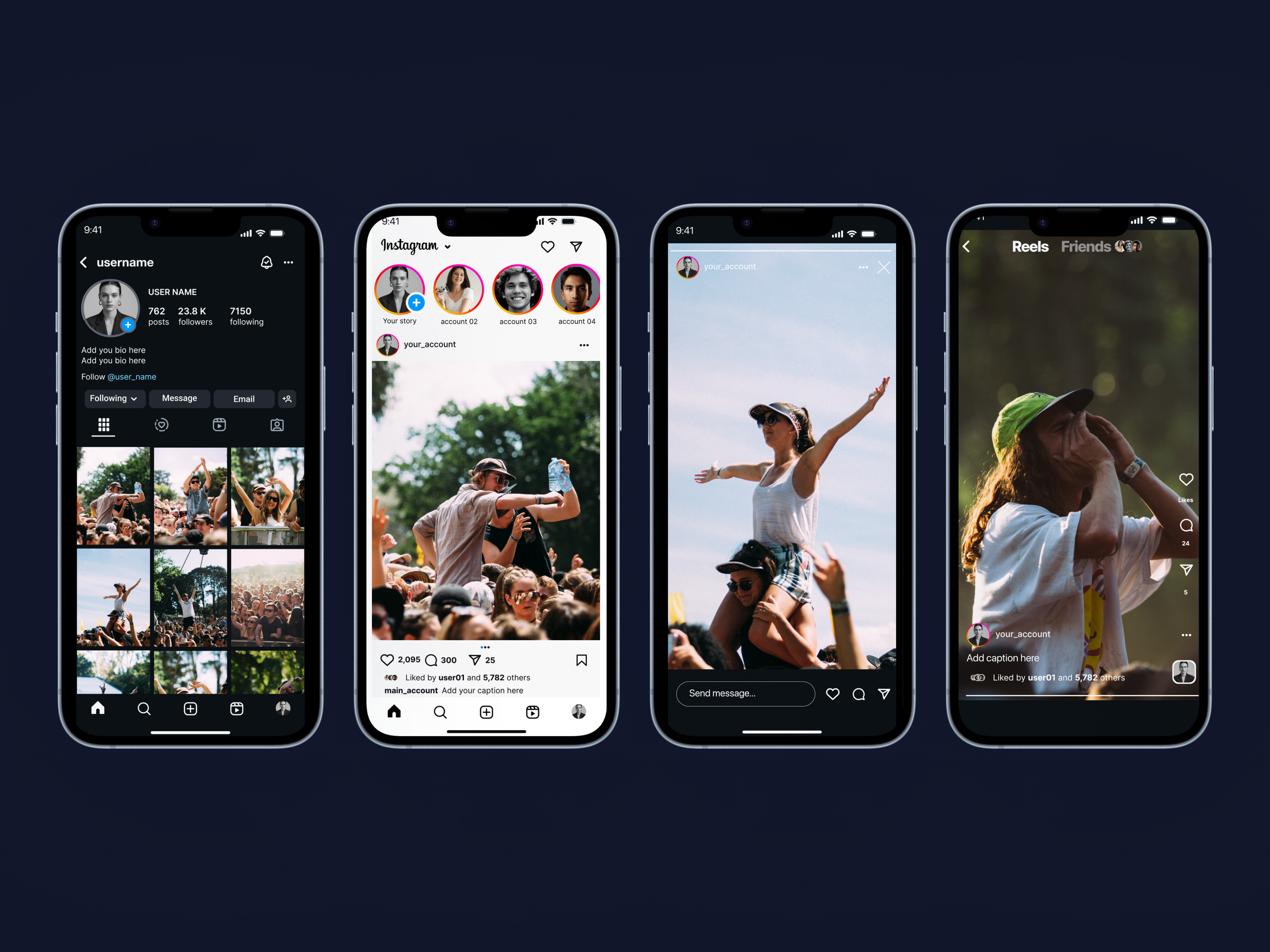 Instagram Feed screen – Dark mode